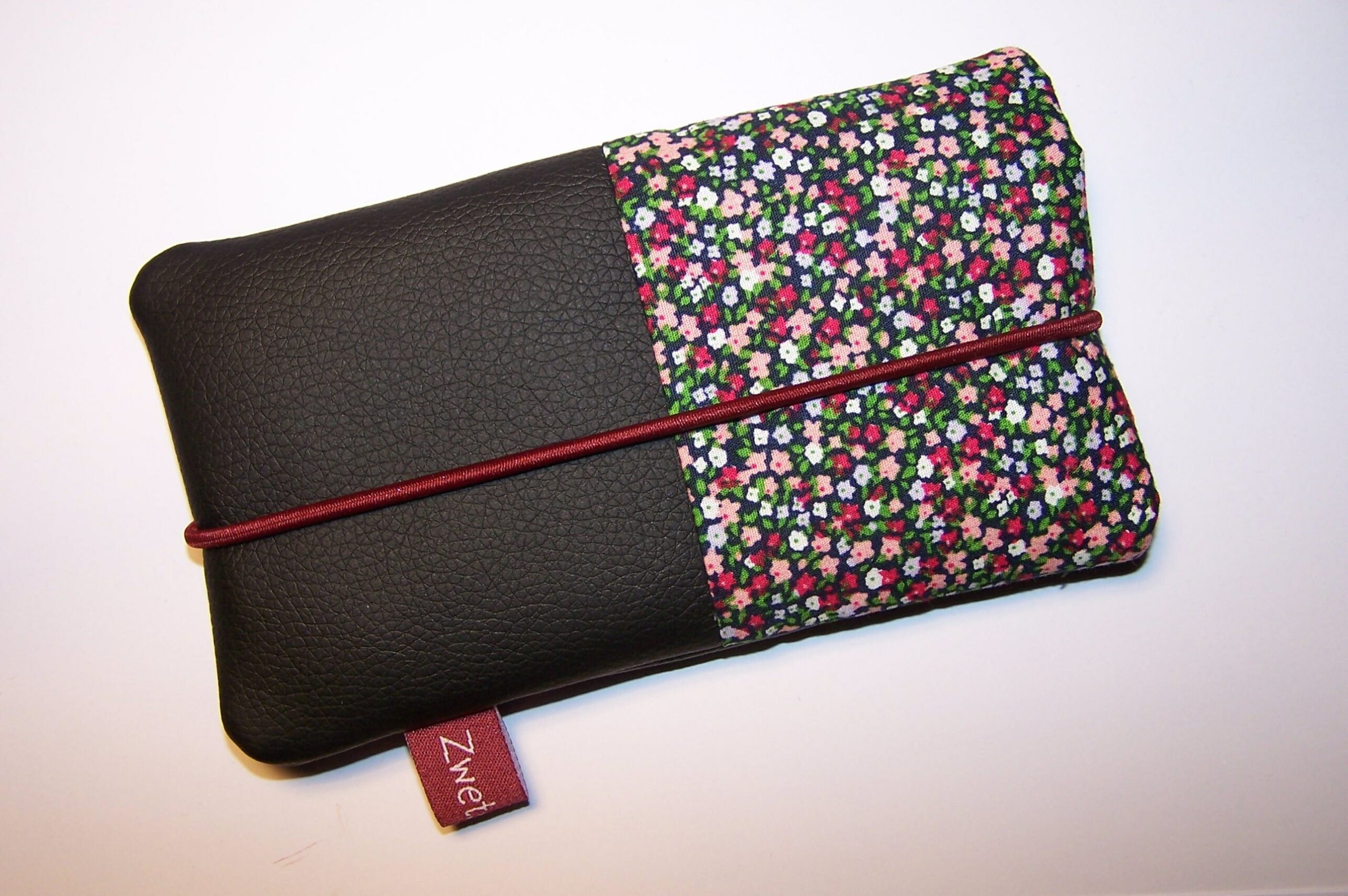 Diese stylische, edle Handytasche ist aus hochwertigem Kunstleder- und Baumwollstoff gefertigt. Die Tasche ist mit Vlies gefüttert und dadurch wunderbar gepolstert und schützt dein Handy perfekt. Geschlossen wird sie mit einer Gummikordel.